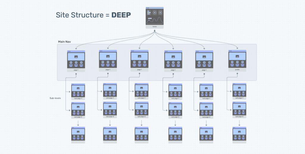 When it comes to website architecture, one of the key decisions you’ll need to make is whether to opt for a flat or deep structure. A flat architecture aims to make content accessible within as few clicks as possible, typically three or fewer. This approach prioritizes easy access to information and can be particularly beneficial for user experience and SEO.
